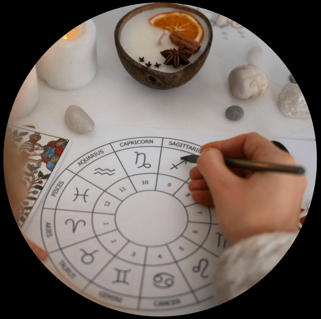 Integra herramientas de psicología clínica, terapia Gestalt, astrología terapéutica, ejercicios de consciencia corporal, escritura reflexiva y rituales simbólicos de integración.